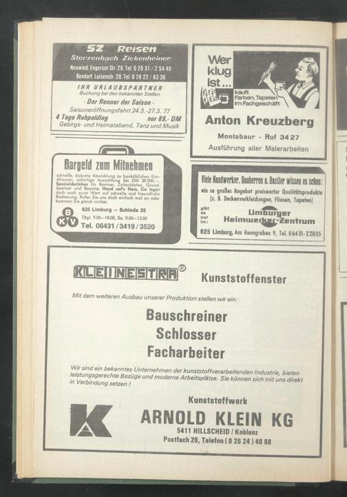 5411 HILLSCHEID / Koblenz Postfach 20, Telefon (0 26 24) 40 88