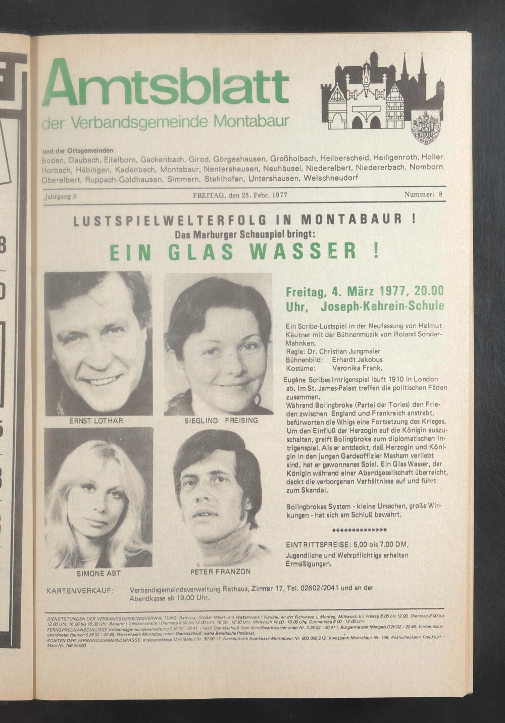 Verbandsgemeindeverwaltung Rathaus, Zirrmar 17, Tel. 02602/2041 und an der Abendkasse ab 19.00 Uhr.