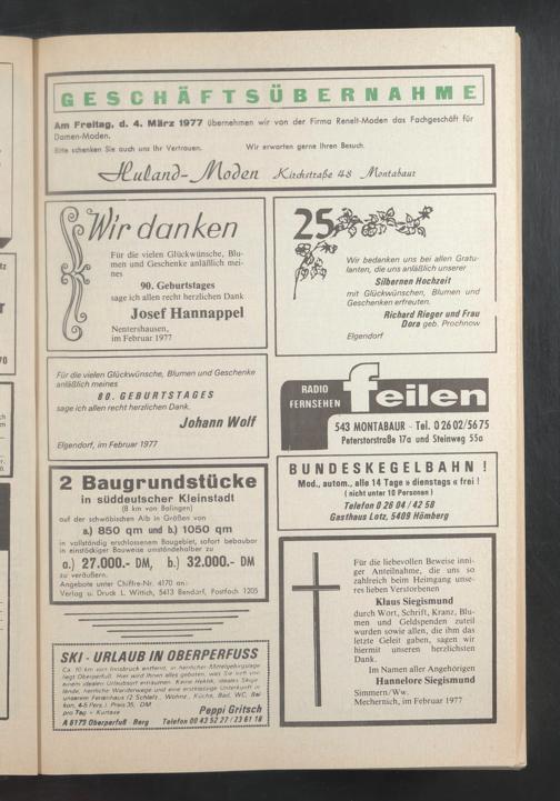 Am Freitag, d. 4. März 1977 übernehmen wir von der Firma Renelt-Moden das Fachgeschäft für Damen-Moden.