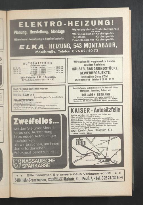 Nauwlad, MuiaumatraBa 33, Talafon 02631/25768 Umar GatchdfttfOhrar, Harr HEINZ TRIMBORN, 5431 Horbodi, HouptatroBa 25, Talafon 0 6439/77 43, besucht Sla parsSnlldi.