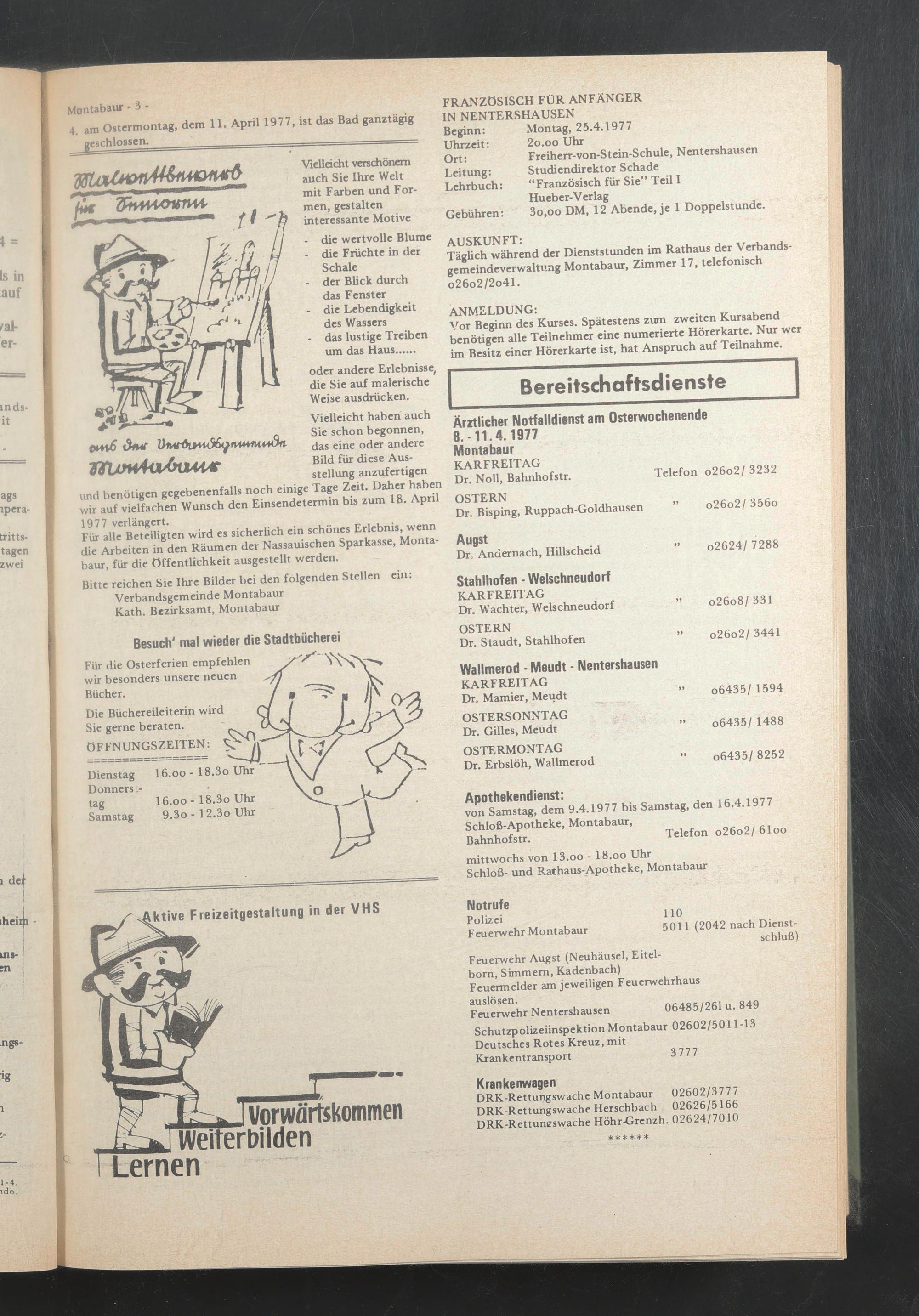 von Samstag, dem 9.4.1977 bis Samstag, den 16.4.1977 Schloß-Apotheke, Montabaur,