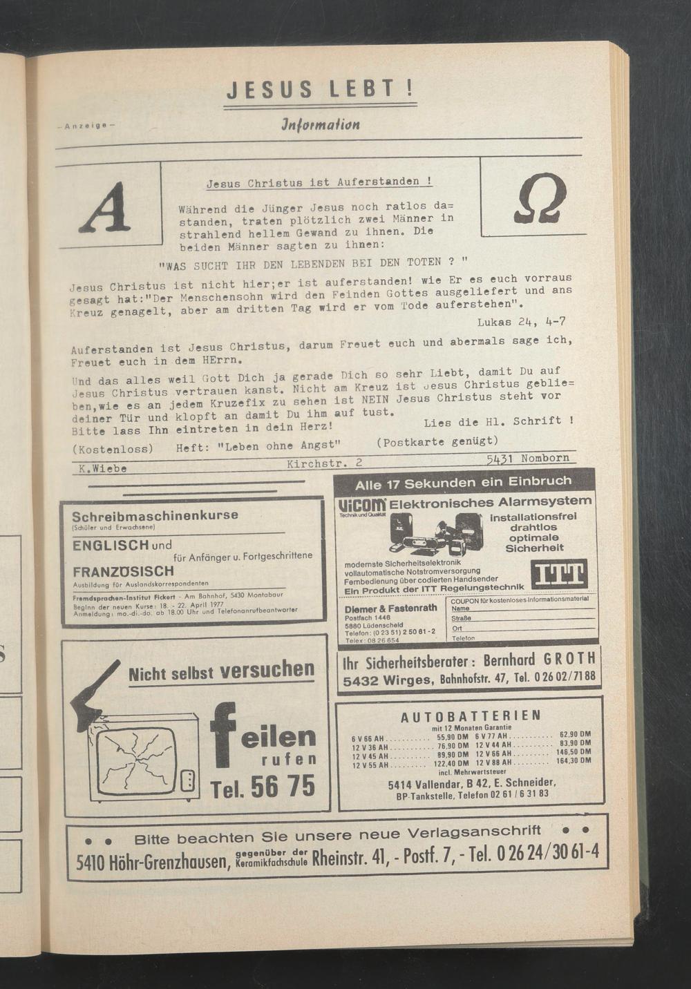 Fremdsprachen-Instituf Fickert - Am Bahnhof, 5430 Montabaur Beginn der neuen Kurse: 18. - 22. April 1977