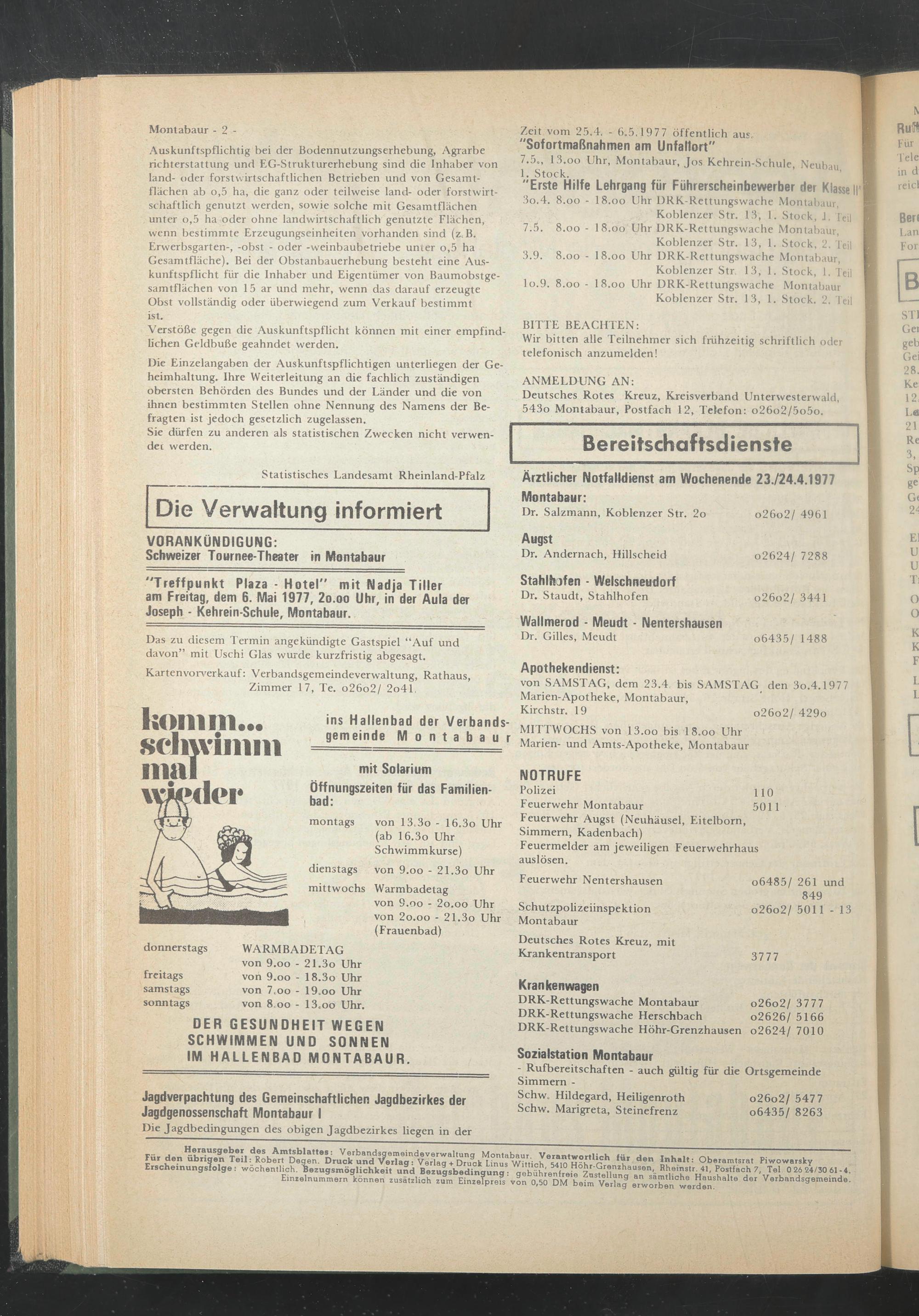 Ärztlicher Notfalklienst am Wochenende 23./24.4.1977 Montabaur: