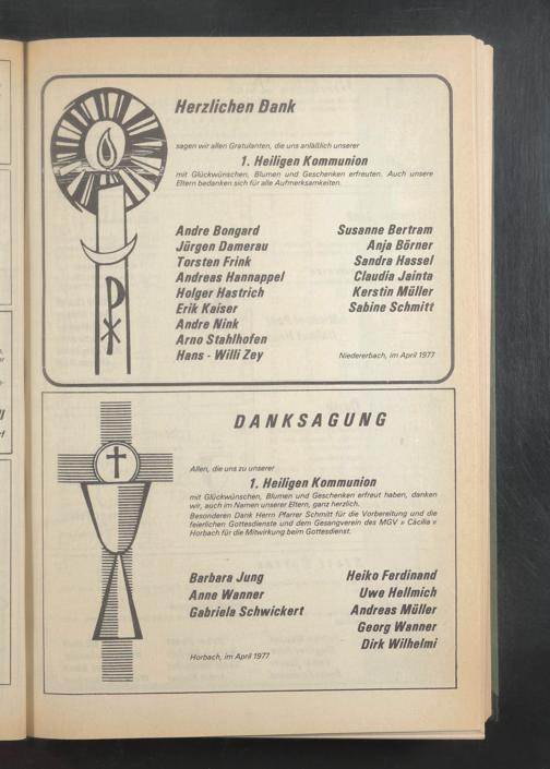 Besonderen Dank Herrn Pfarrer Schmitt für die Vorbereitung und die feierlichen Gottesdienste und dem Gesangverein des MGV » Cäcilia « Horbach für die Mitwirkung beim Gottesdienst.