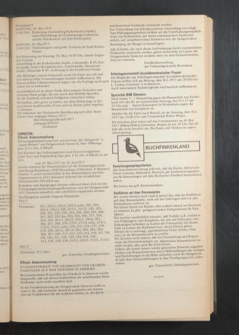 vom 8U, Mai 1077 hin 8!».Juni 1077 Jeweils währaud dar Dianstslundan lud dar Verbandsyemeinde. Verwaltung Moulahaur, 54110 Mnutahaur, Uelhachslr, 0 (llauaml) /immer 7, sowie nachrichtlich in den Dlausträuman des Orts* l'iiraarmaistars in 5411 «immern währpud dar ortsüblichen Dienstsl nndeu Öffentlich aus,