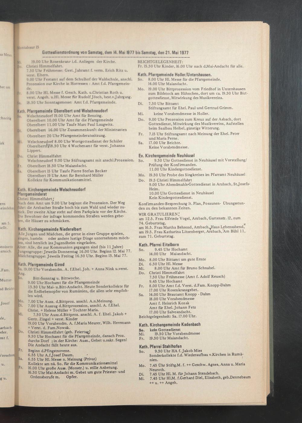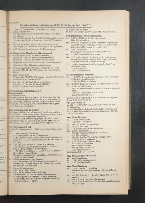 Gottesdienstordnung von Samstag, dem 14. Mai 1977 bis Samstag, den 21. Mai 1977