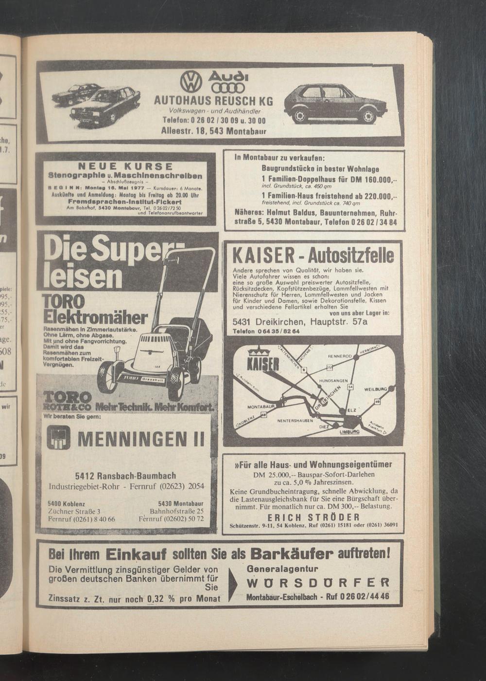 BEGINN; Montag 16. Mal 1977 — Kursdauert 6 Monate.