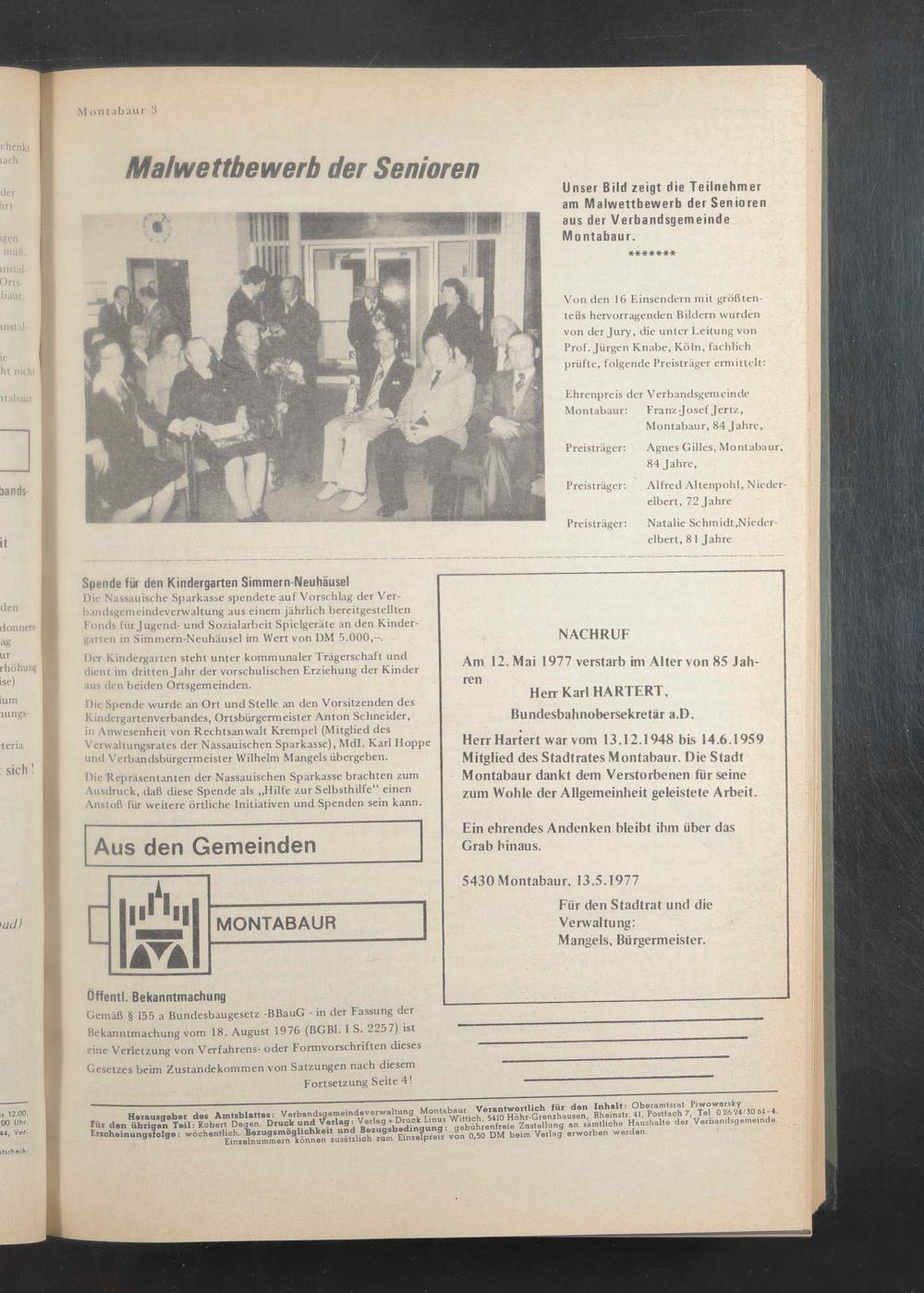Herausgeber des Amtsblattes: Verbandsgemeindeverwaltung Montabaur. Verantwortlich für den Inhalt: Oberamtsrat Piwowarsky