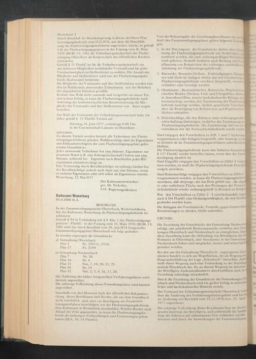 In der Zusammenlegungssache Obererbach, Westerwaldkreis, hat das Kulturamt Westerburg als Flurbcreinigungsbehörde beschlossen: