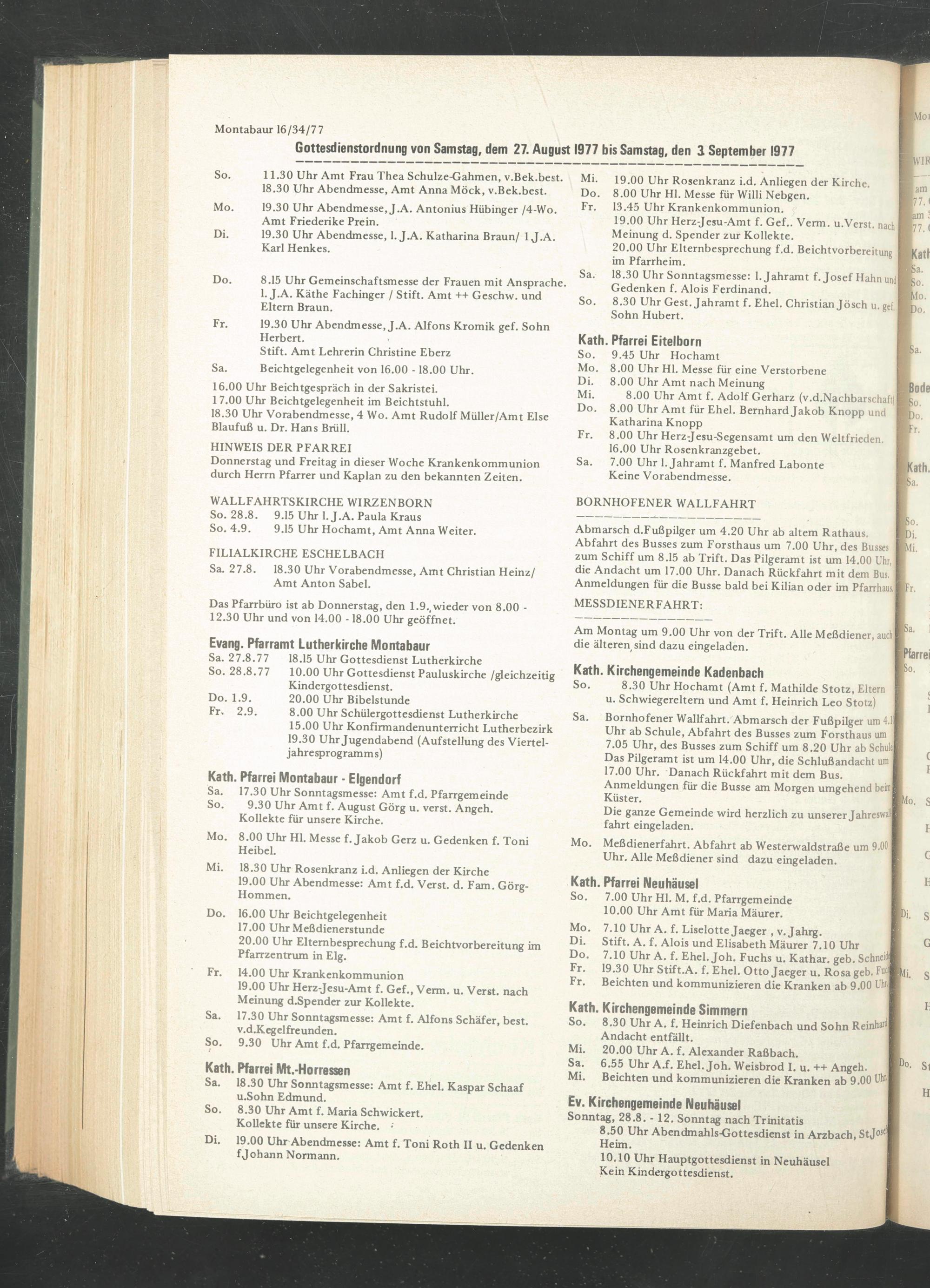 Gottesdienstordnung von Samstag, dem 27. August 1977 bis Samstag, den 3. September 1977