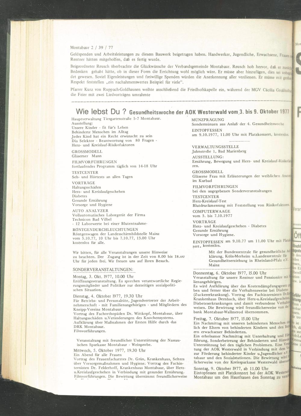 Wi© lebst Du ? Gesundheitswoche der AOK Westerwald vom. 3. bis 9. Oktober 1977