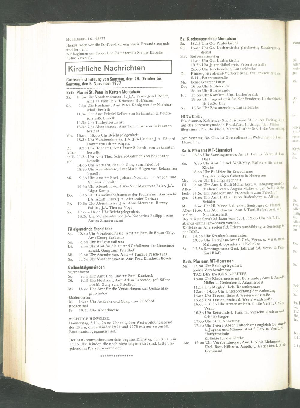 Gottesdienstordnung von Samstag, dem 29. Oktober bis Samstag, den 5. November 1977
