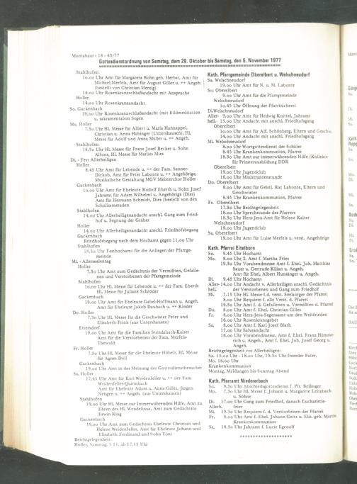 Gottesdienstordnung von Semstag, dem 29. Oktober bis Samstag, den 5. November 1977
