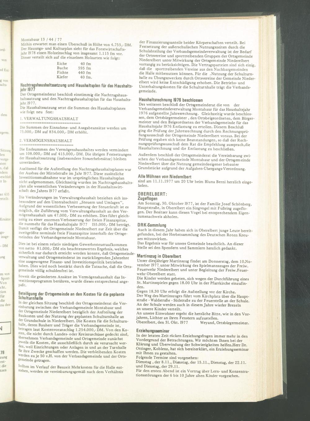 Der Ortsgemeinderat beschloß einstimmig die Nachtragshaushaitssatzung und den Nachtragshaushaltsplan für das Haushaltsjahr 1977.