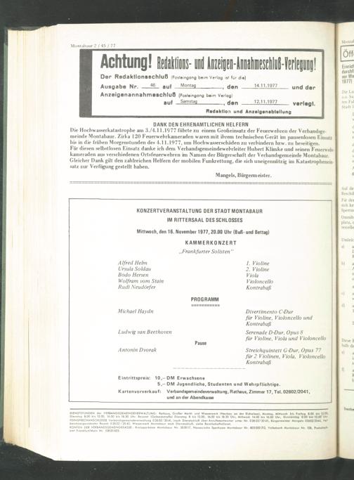 Mittwoch, den 16. November 1977,20.00 Uhr (Buß- und Bettag)