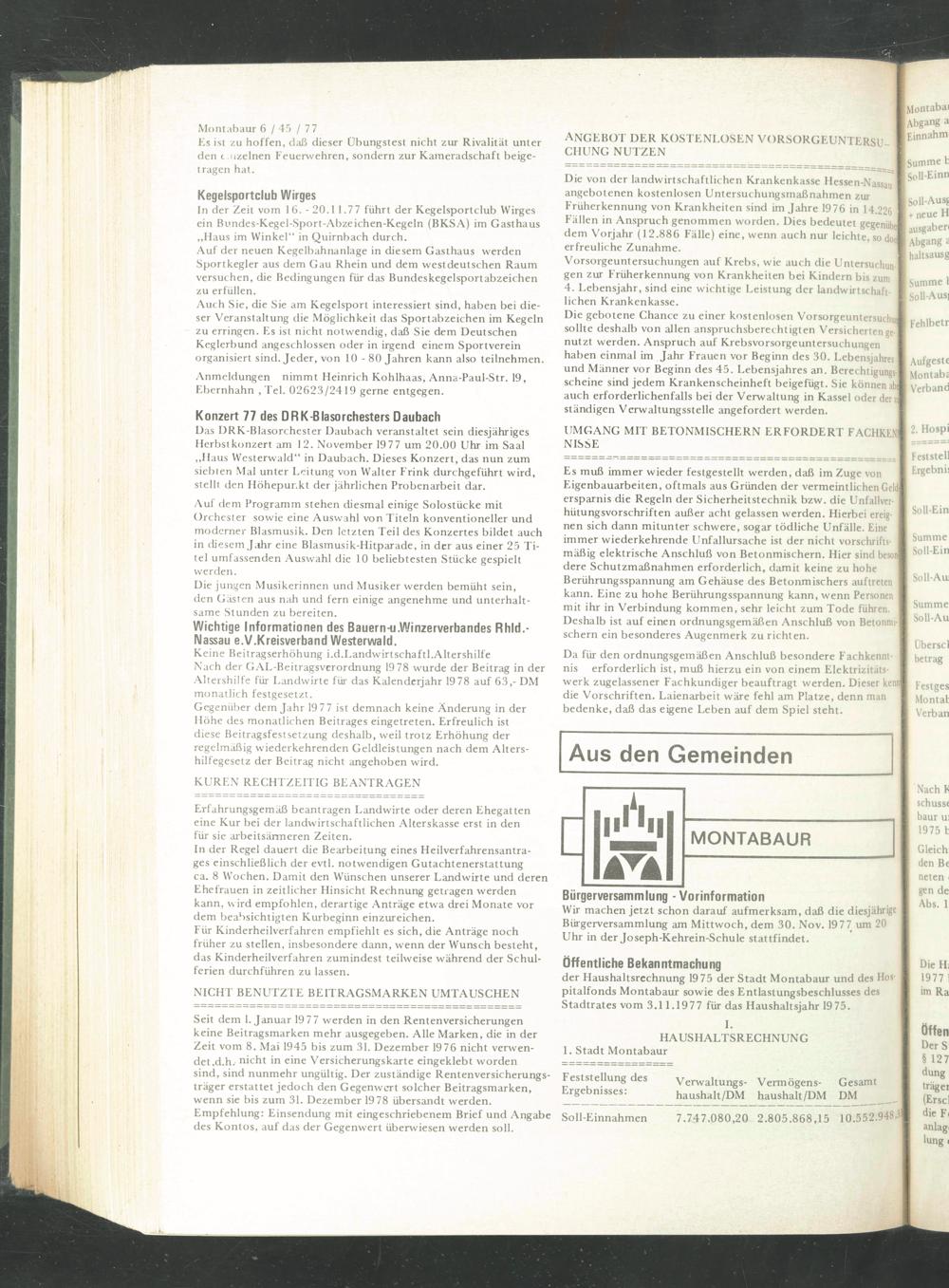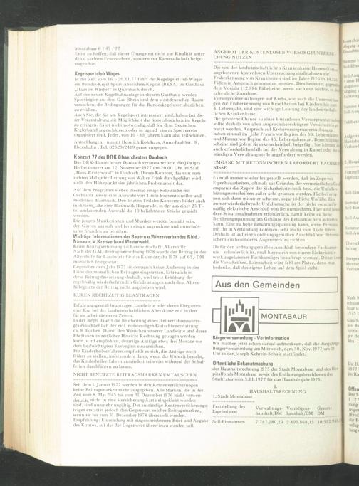 der Haushaltsrechnung 1975 der Stadt Montabaur und des Hospitalfonds Montabaur sowie des Entlastungsbeschlusses des Stadtrates vom 3.11.1977 für das Haushaltsjahr 1975.