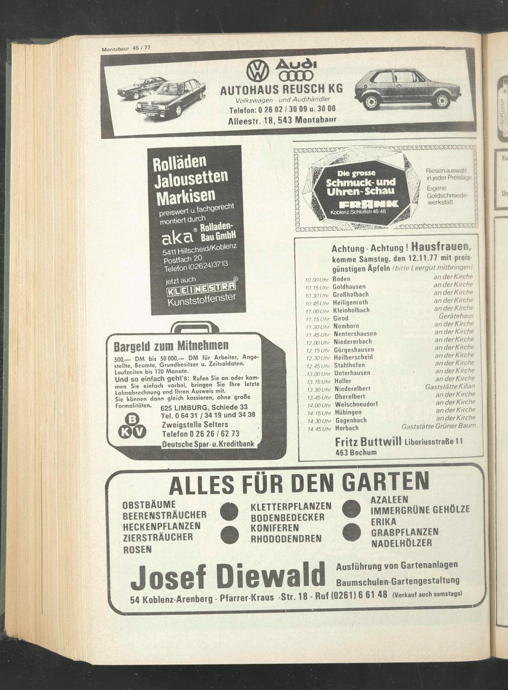 54 Koblenz-Arenberg - Pfarrer-Kraus -Str. 18 - Ruf (0261) 6 61 48 (Verkauf auch samstags)