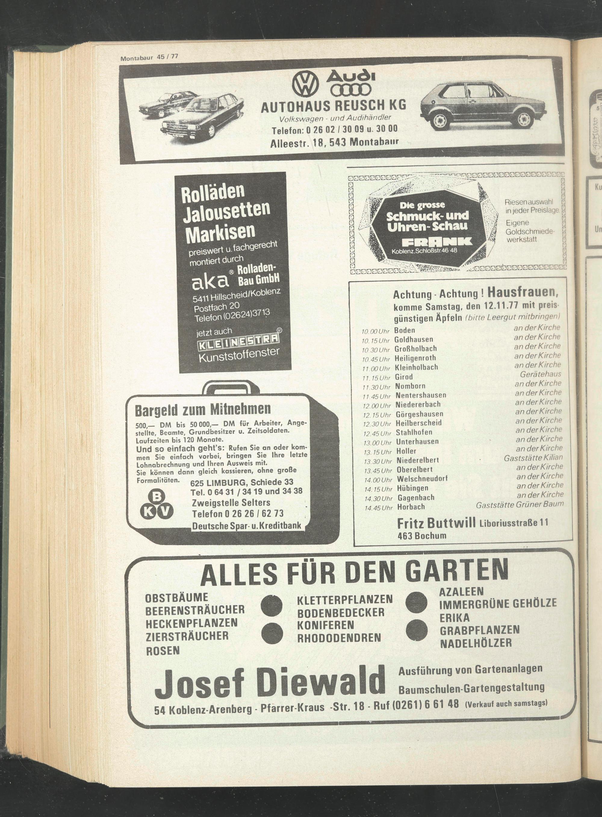 komme Samstag, den 12.11.77 mit preis günstigen Äpfeln (bitte Leergut mitbringenl