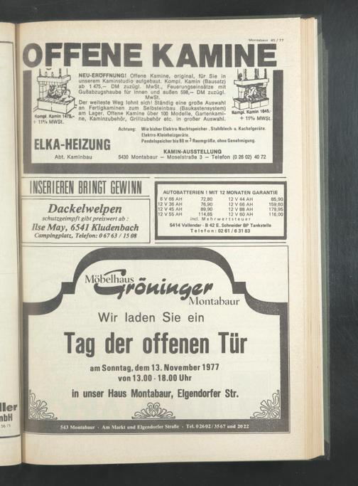 am Sonntag, dom 13. November 1977 von 13.00-18.00 Uhr