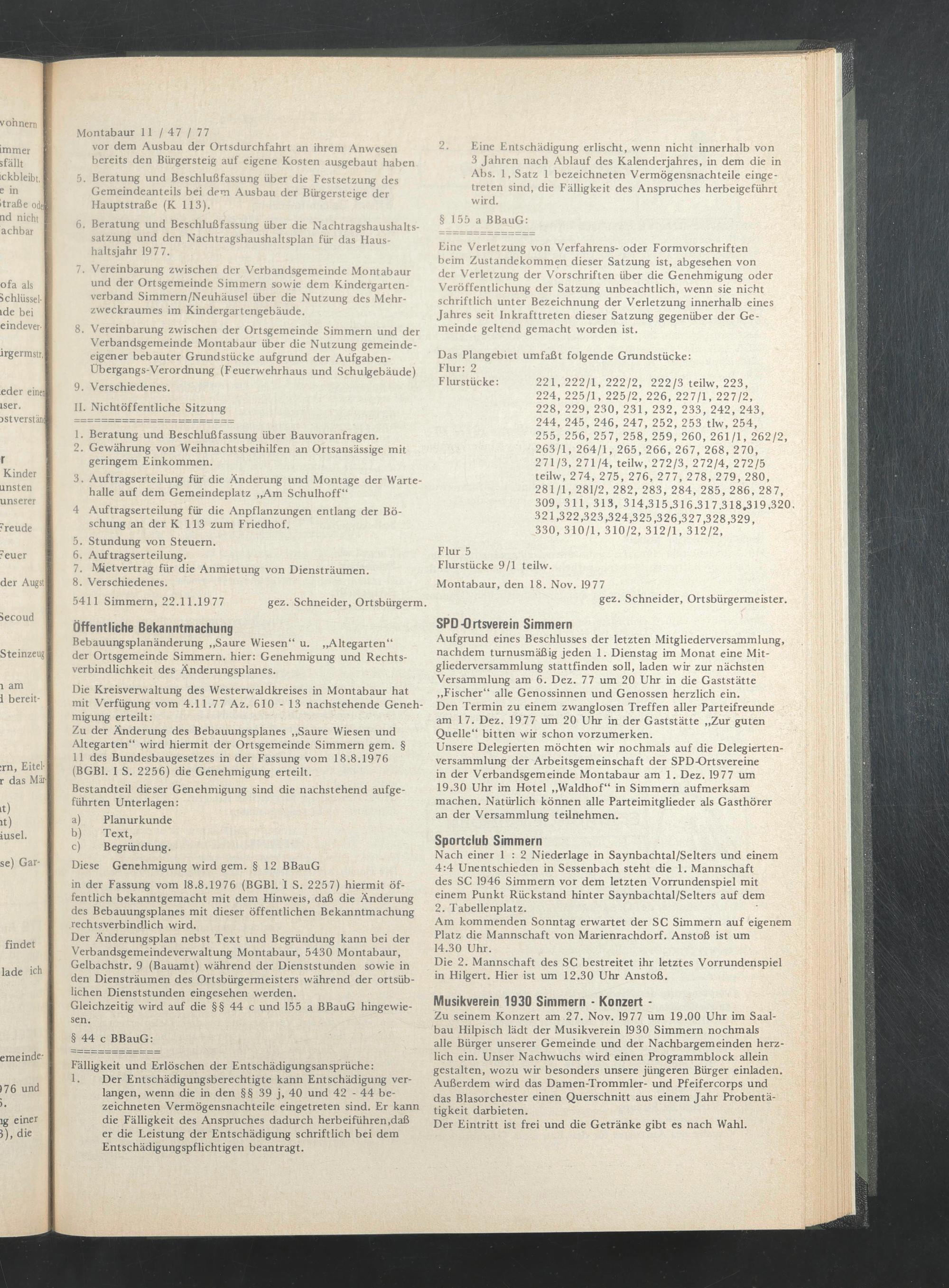 5411 Simmern, 22.11.1977 gez. Schneider, Ortsbürgerm.