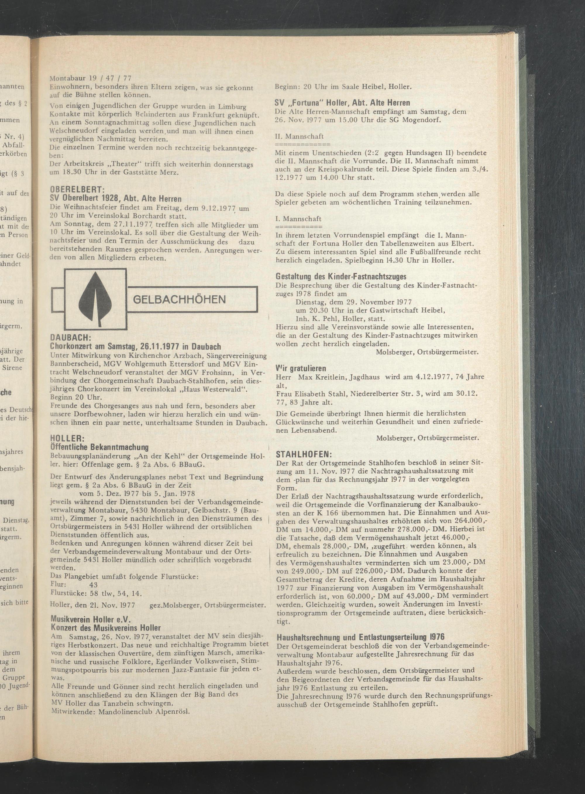 Holler, den 21. Nov. 1977 gez.Molsberger, Ortsbürgermeister.