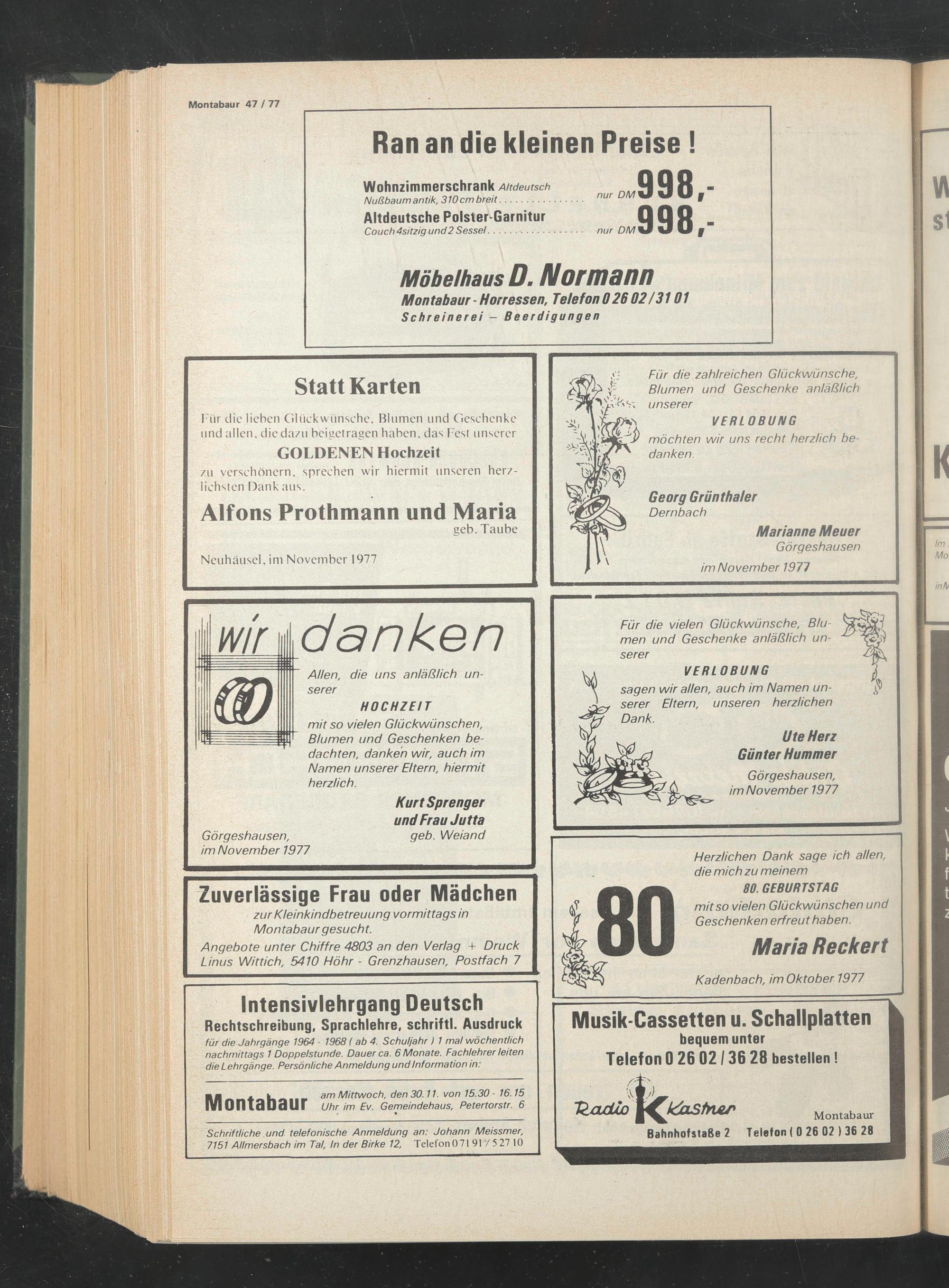 Angebote unter Chiffre 4803 an den Verlag + Druck Linus Wittich, 5410 Höhr - Grenzhausen, Postfach 7