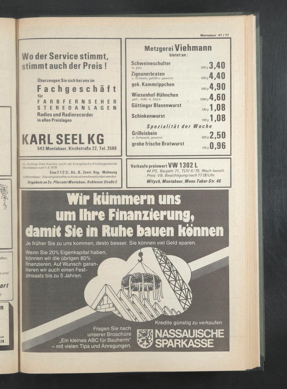 Im Auftrag ihres Kantors sucht die Evangelische Kirchengemeinde Montabaur zum 1.4.1978