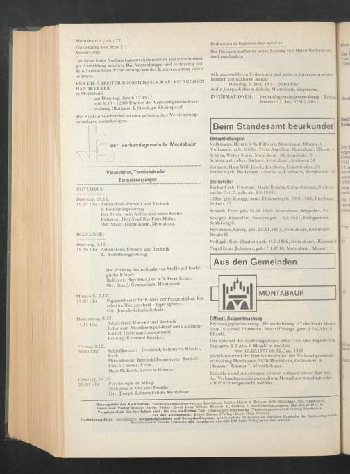 Dienstag, 6. Dez. 1977, 20.00 Uhr in die Joseph-Kehrein-Schule, Montabaur, eingeladen.