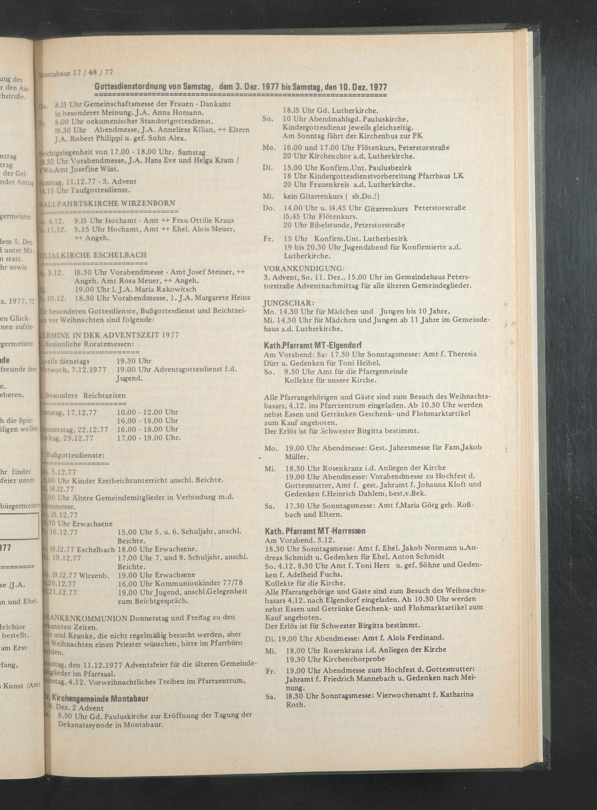 Got^sdienrtDrdnung von Samstag, dem 3. Dez. 1977 bis Samstag, den 10. Dez. 1977