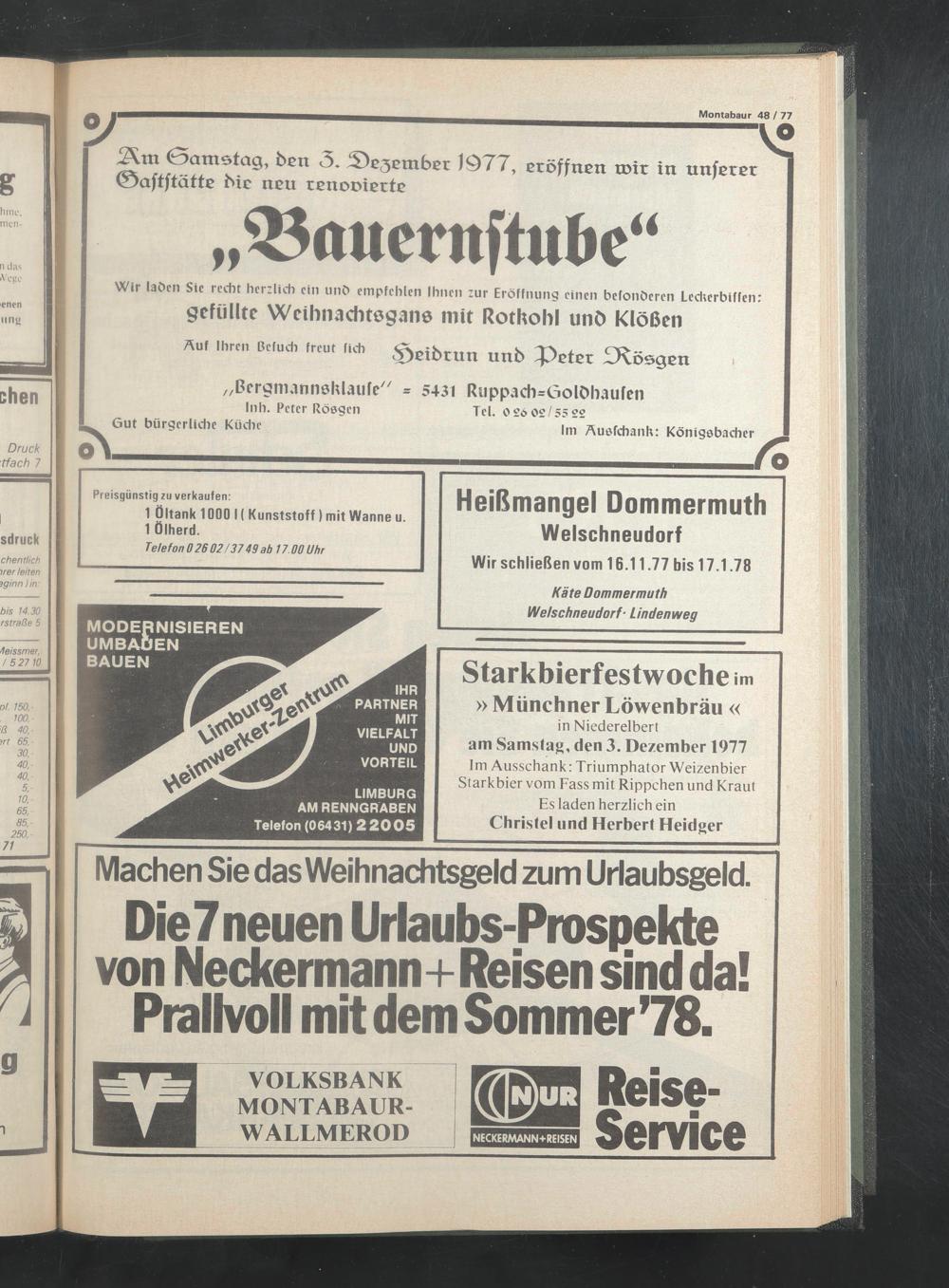(0>atnefaQ, ben 3. ^£)c 3 etnbet 1Q77, eröffnen roir in unsrer