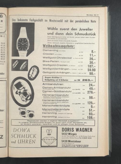 Uhren, Schmuck, Juwelen, Bestecke u. ausgefallene Geschenkartikel.