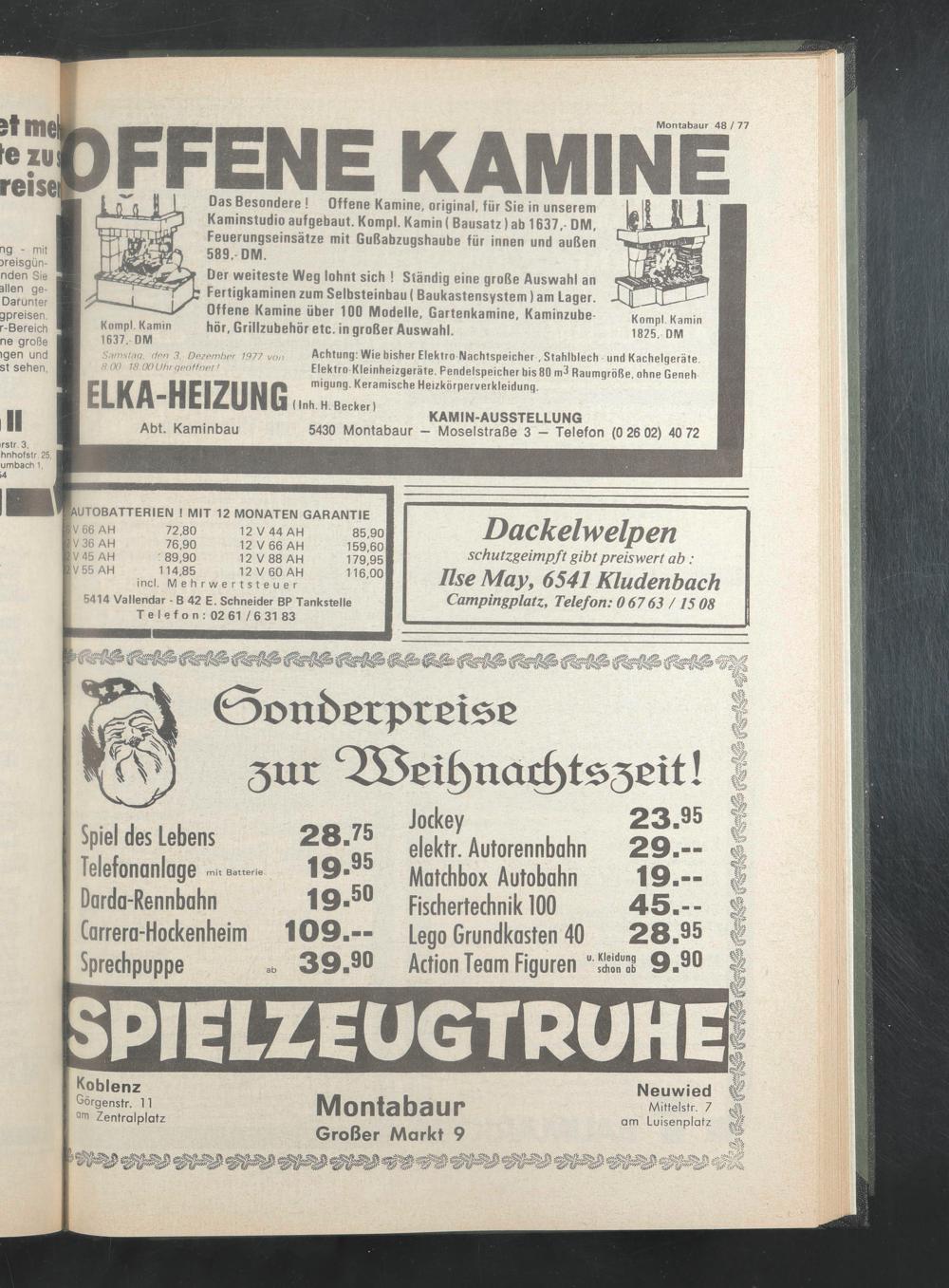 Snmslng. den 3. Dezember 1977 von 8 00 18 00 Uhr geöffnet 1