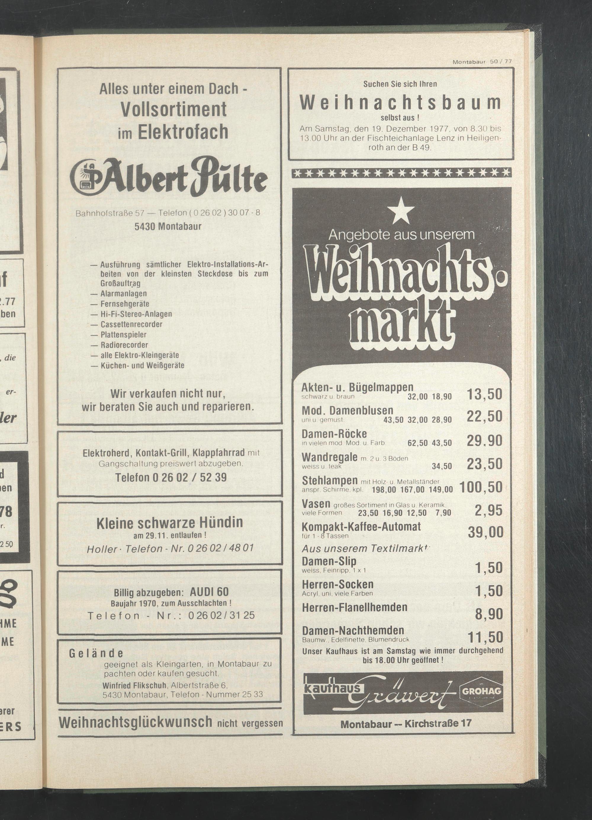 Am Samstag, den 19. Dezember 1977. von 8.30 bis 13.00 Uhr an der Fischteichanlage Lenz in Heiligen- roth an der B 49.