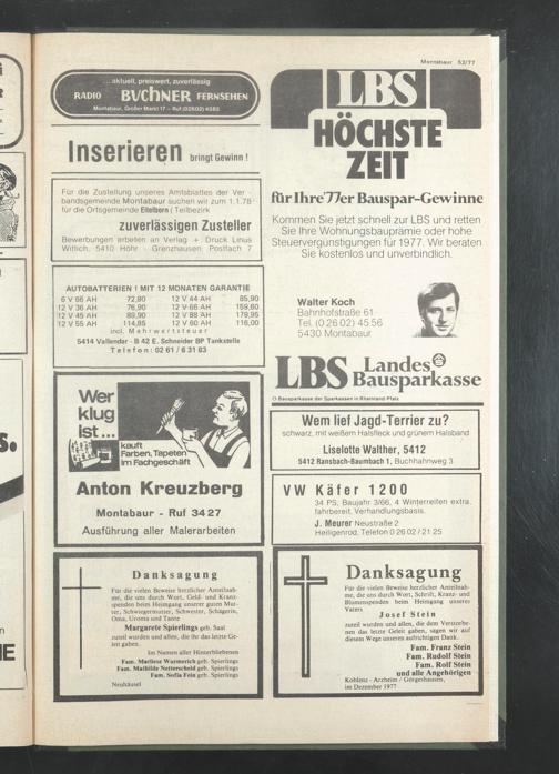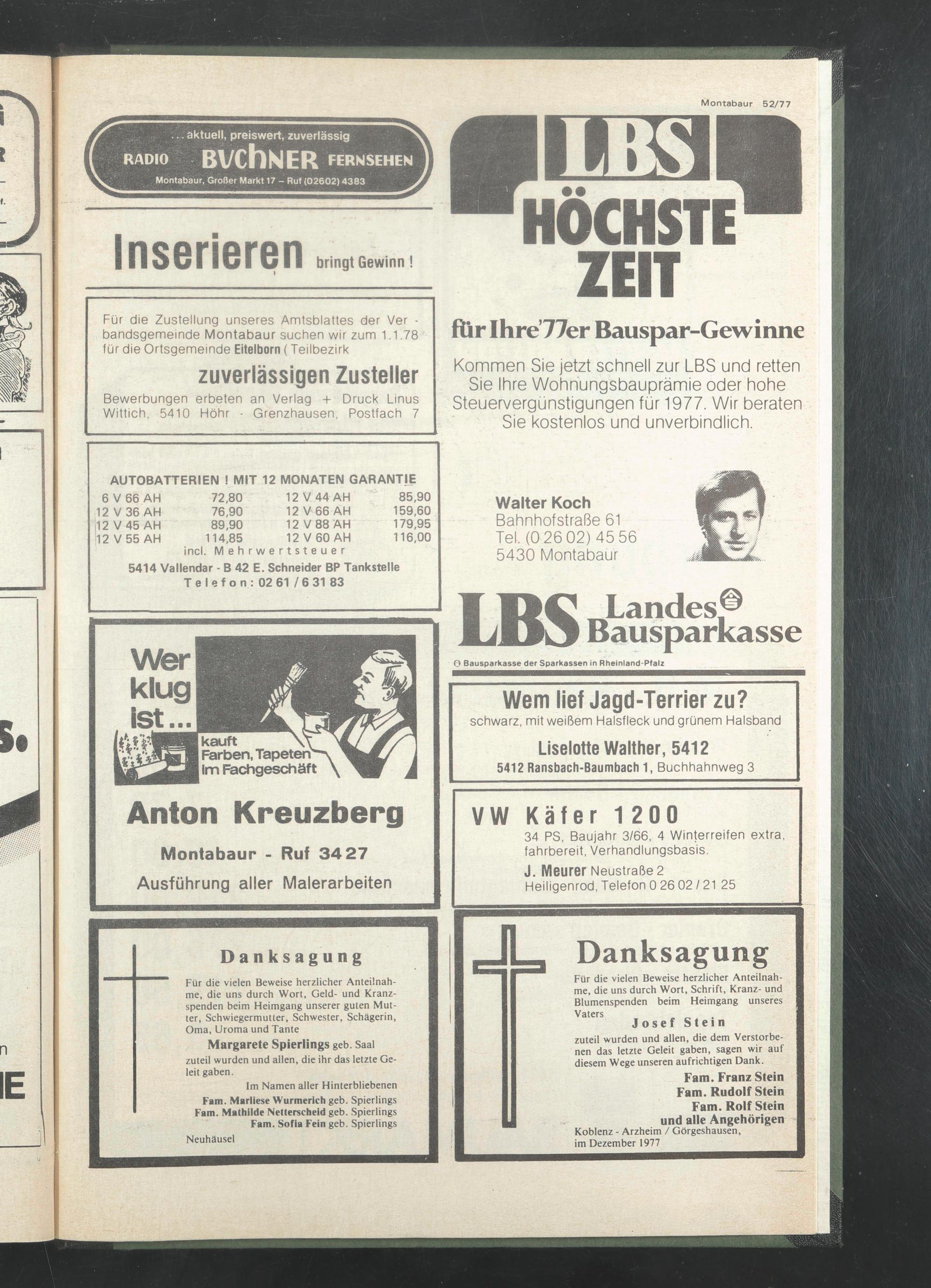 Für die Zustellung unseres Amtsblattes der Ver - bandsgemeinde Montabaur suchen wir zum 1.1.78 für die Ortsgemeinde Eitelborn (Teilbezirk