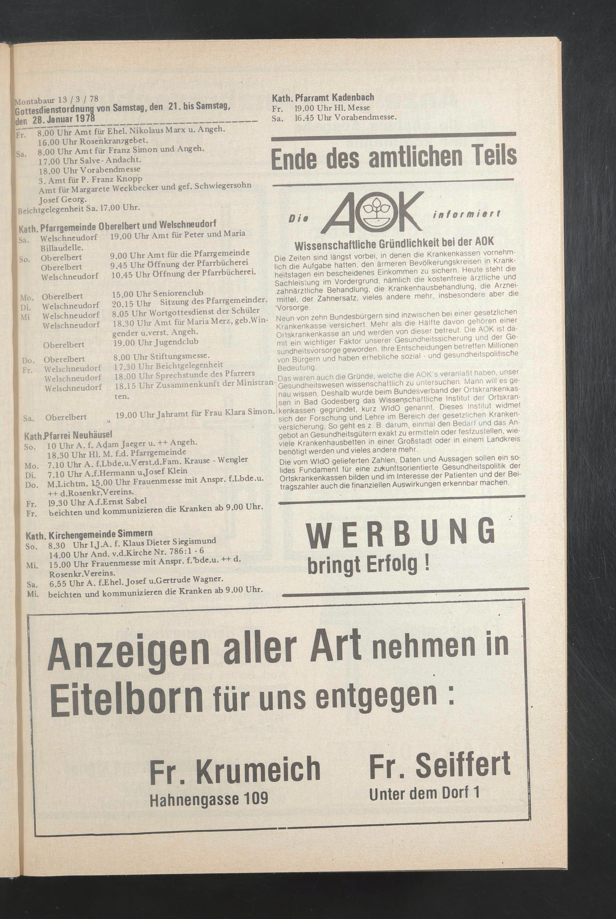 Anzeigen aller Art nehmen in Eitelborn für uns entgegen :