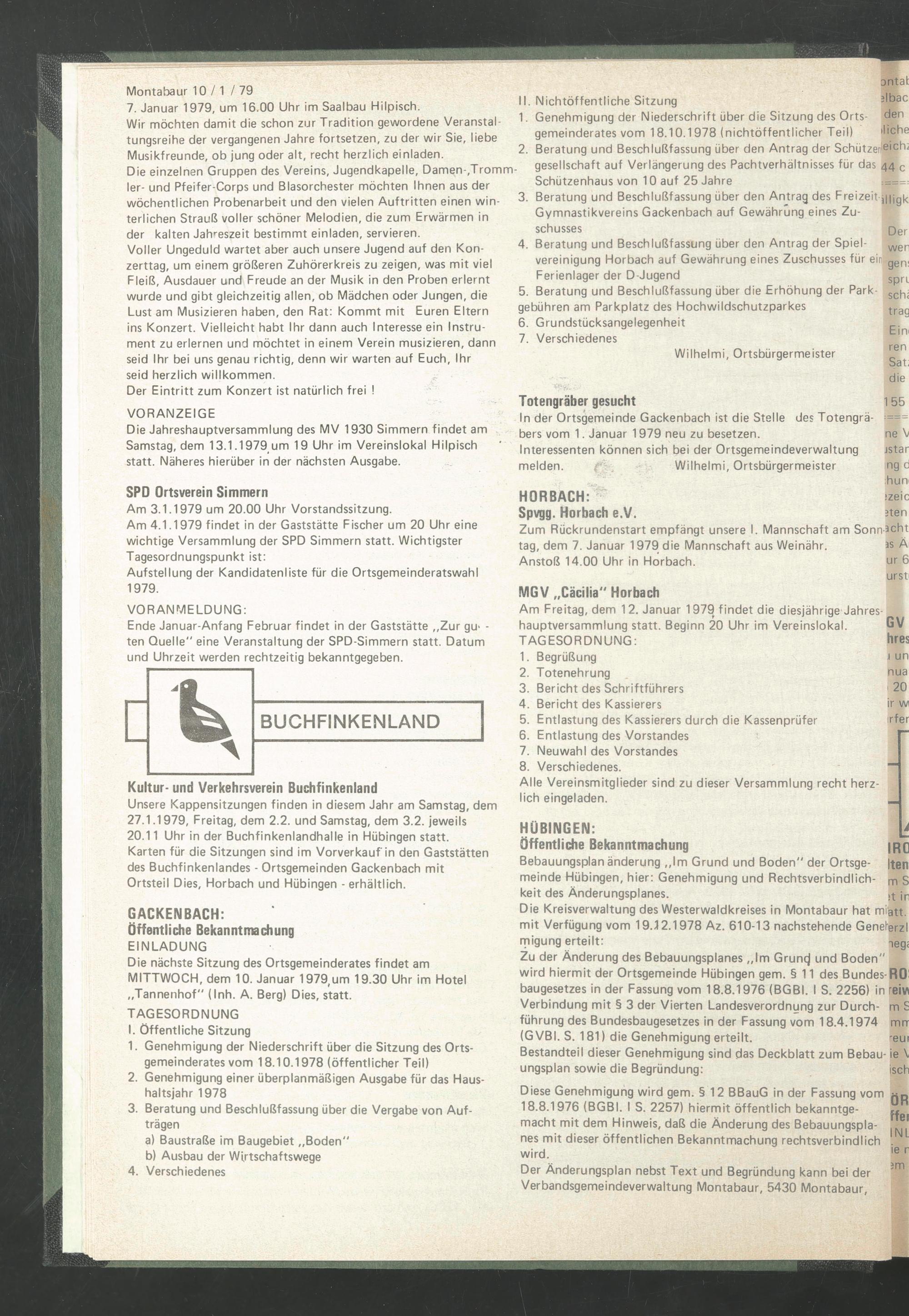 Die nächste Sitzung des Ortsgemeinderates findet am MITTWOCH, dem 10. Januar 1979 t um 19.30 Uhr im Hotel „Tannenhof" (Inh. A. Berg) Dies, statt.