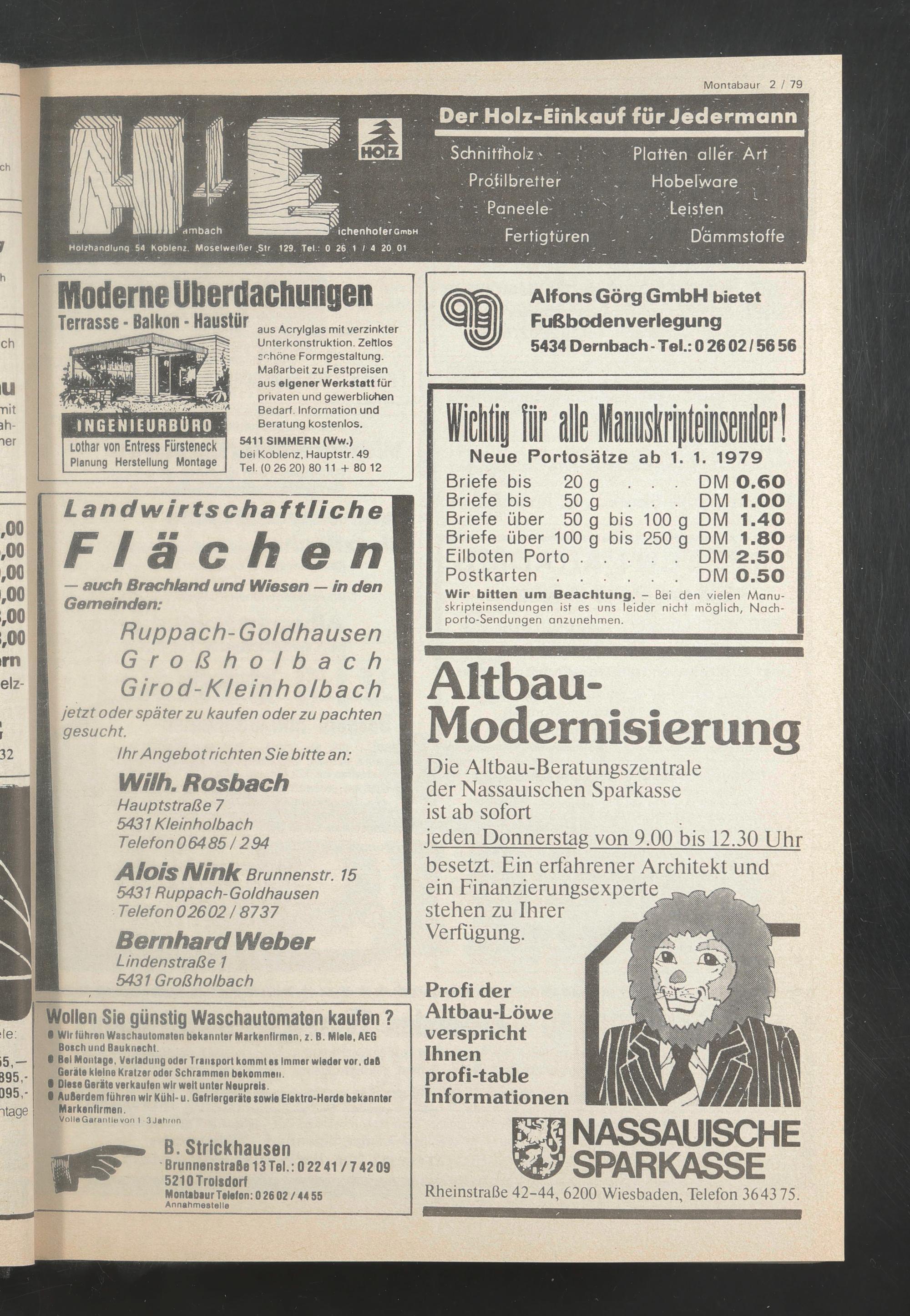 Holzhandlunq 54 Koblenz. Moselweifter Str 129. Tel.: 0 26 1 I 4 20 01