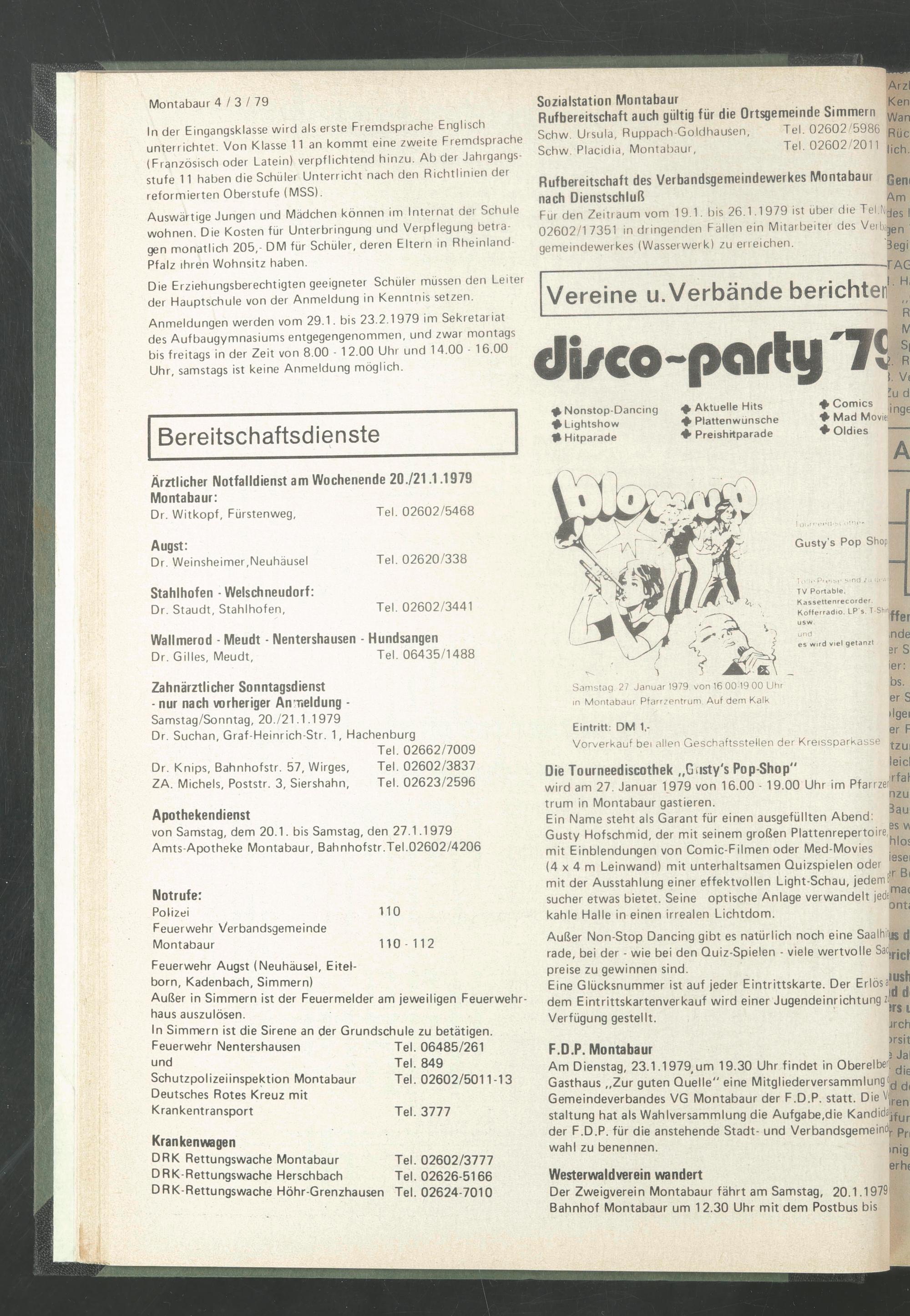 Ärztlicher Notfalldienst am Wochenende 20./21.1.1979 Montabaur: