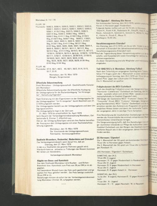 Am kommenden Samstag, dem 24.3.1979, spielen unsere; Herren in Horressen gegen Niederelbert.