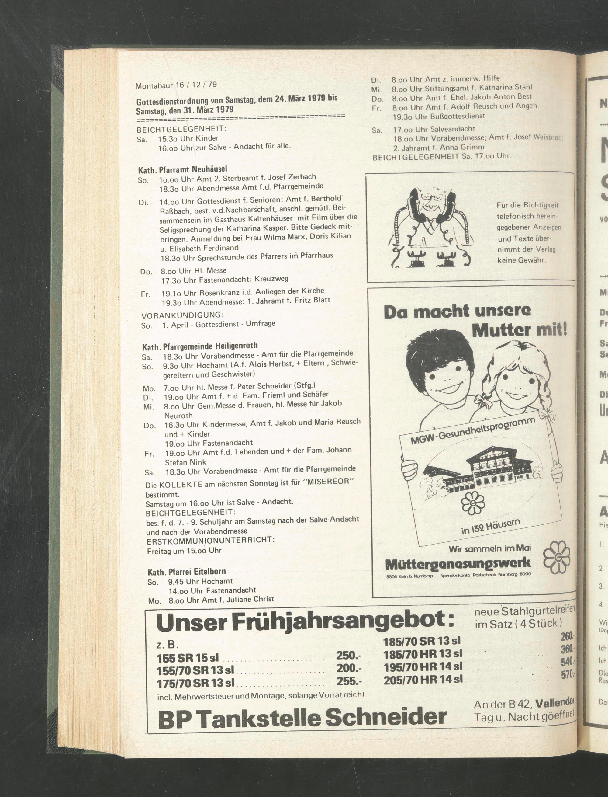 Gottesdienstordnung von Samstag, dem 24. März 1979 bis Samstag, den 31. März 1979