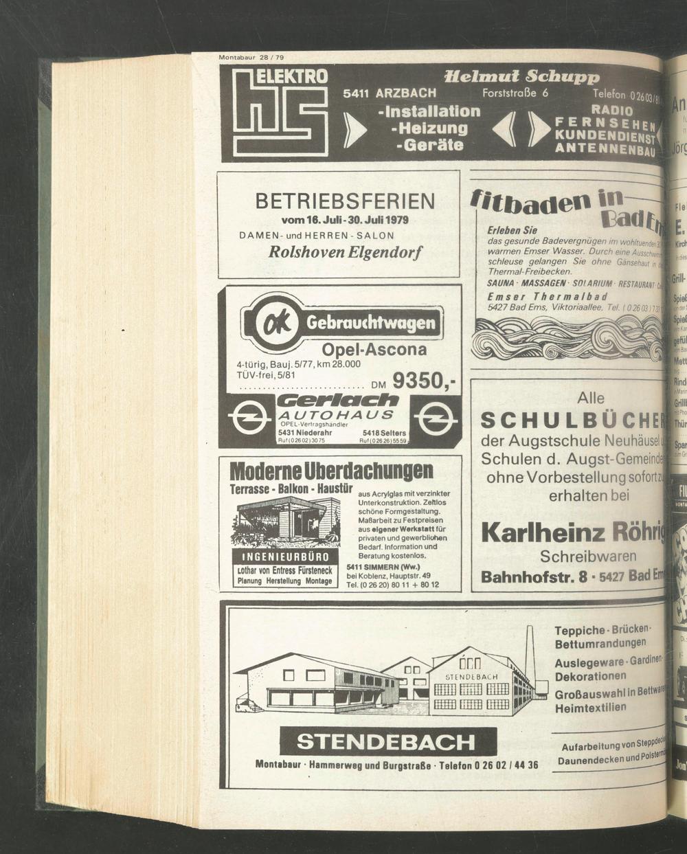 5427 Bad Ems, Viktoriaallee. Tel. 102603)1 33 1