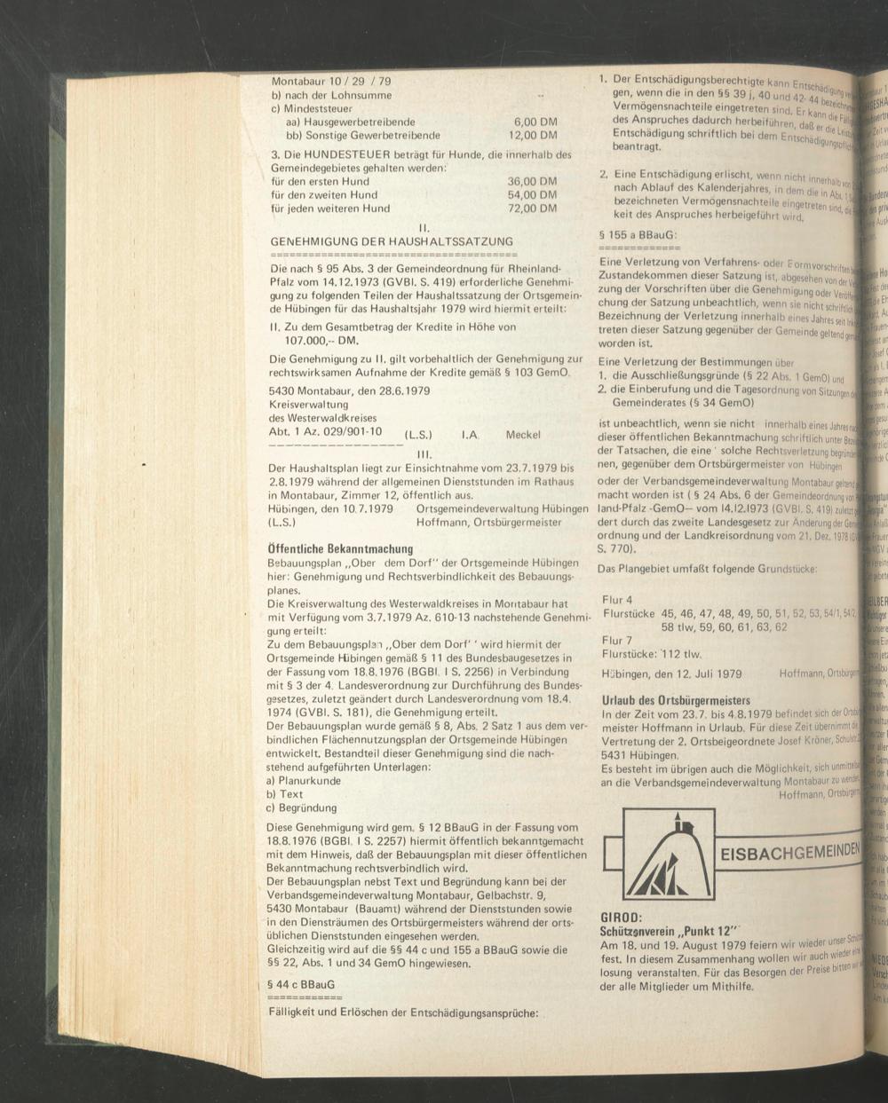 Hübingen, den 10.7.1979 Ortsgemeindeverwaltung Hübingen