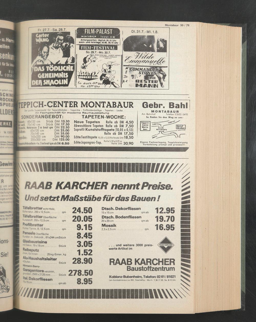 Neue Tapeten Rolle ab DM 4,50 Abwaschbare Tapeten Rolle ab DM 7,50 Suprofil-Kunststofftapete (10,05 x 0,53) Rolle ab DM 17,50 Echte Textiltapete io,os x o,53Roiieab dm 18,50