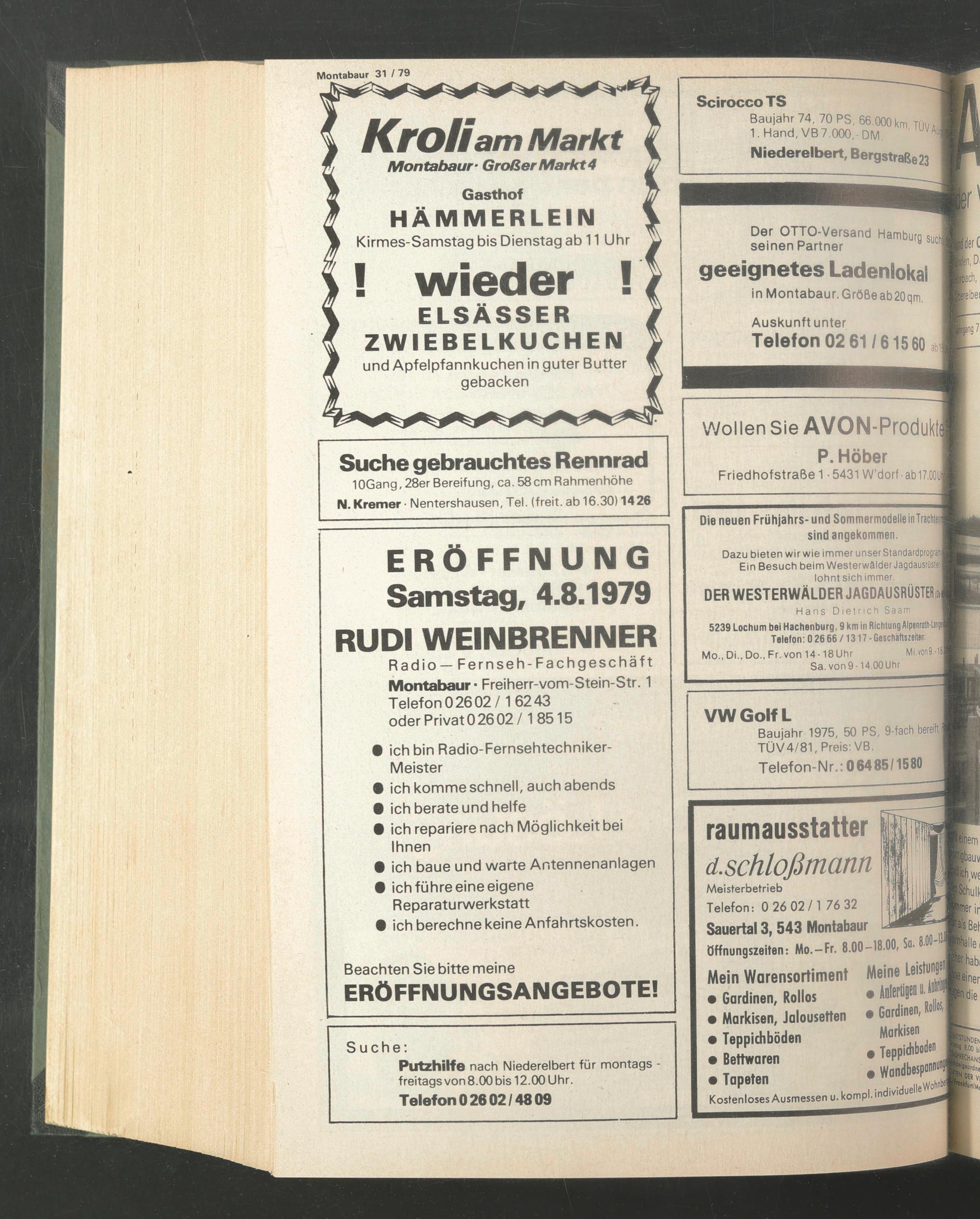 Radio — Fernseh -Fachgeschäft Montabaur* Freiherr-vom-Stein-Str. 1 Telefon 026 02/16243 oder Privat 0 26 02 /1 8515