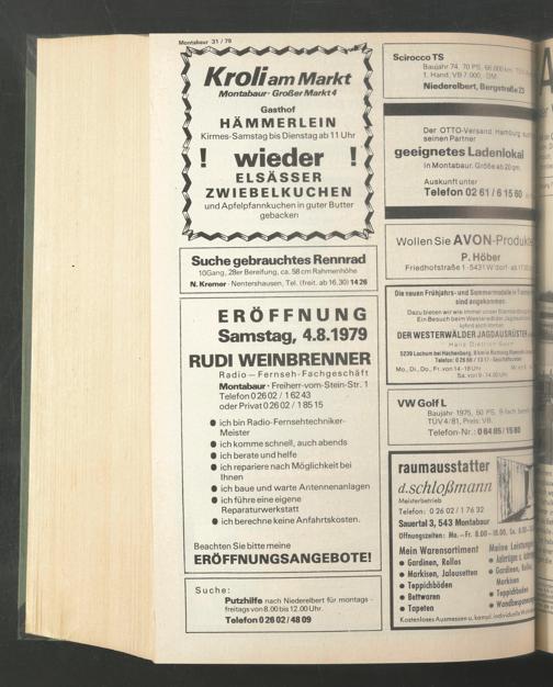 ERÖFFNUNG Samstag, 4.8.1979