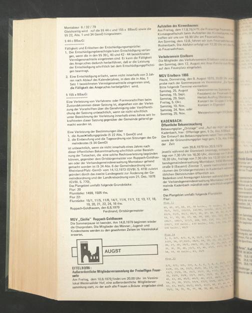 Gleichzeitig wird auf die §§ 44 c und 155 a BBauG sowie die §§ 22, Abs. 1 und 34 GemO hingewiesen: