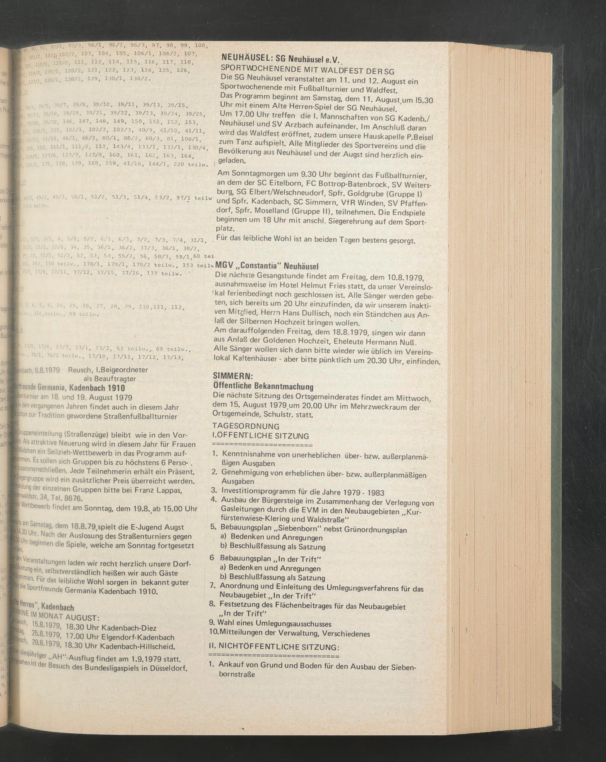Die nächste Sitzung des Ortsgemeinderates findet am Mittwoch, dem 15. August 1979um 20.00 Uhr im Mehrzweckraum der Ortsgemeinde, Schulstr. statt