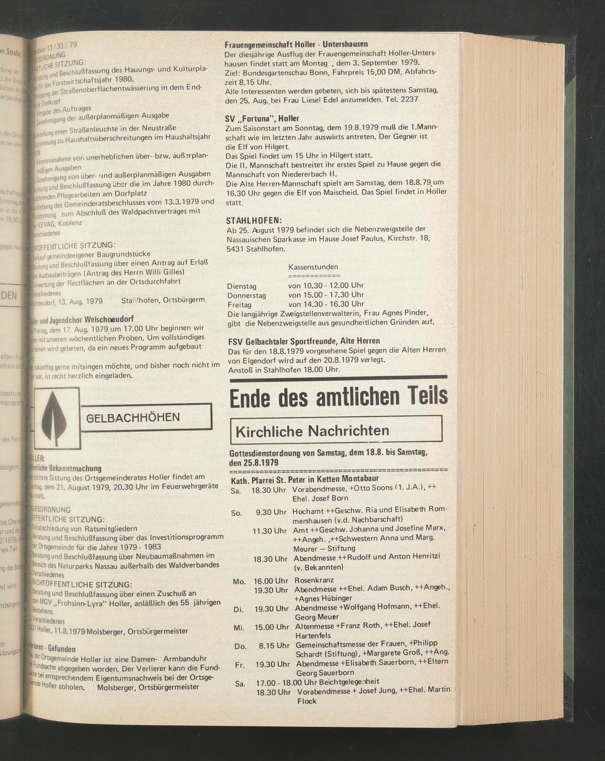 Ab 25. August 1979 befindet sich die Nebenzweigstelle der Nassauischen Sparkasse im Hause Josef Paulus, Kirchstr, 18,