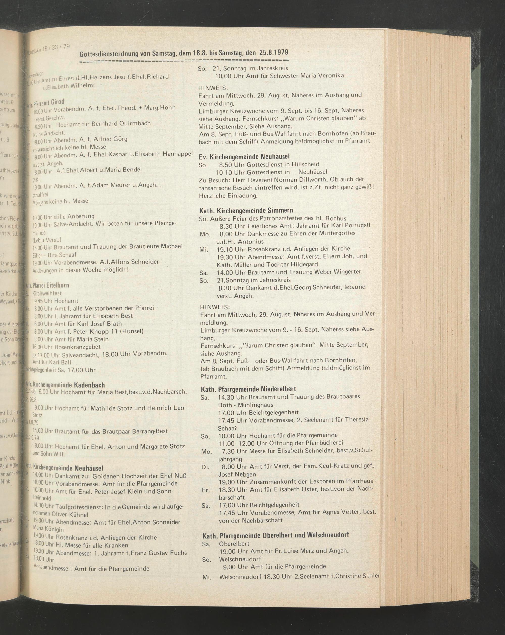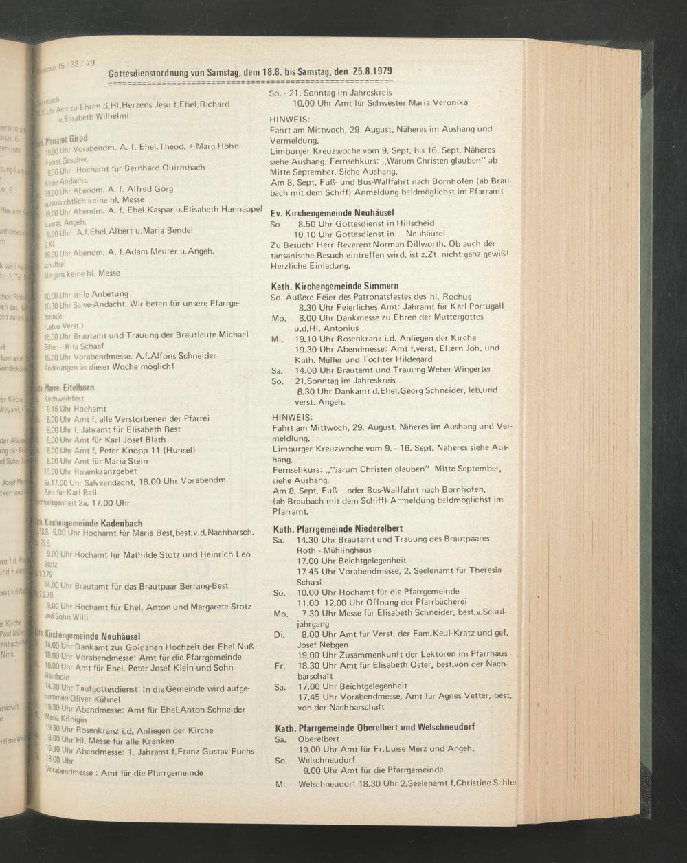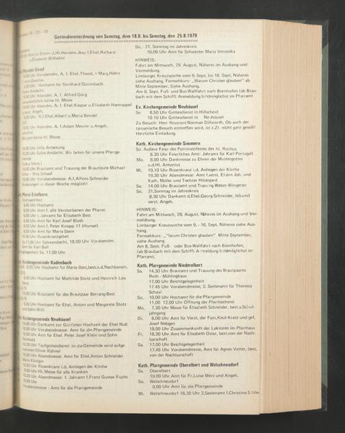 Gottesdienstordnung von Samstag, dem 18.8. bis Samstag, den 25.8.1979