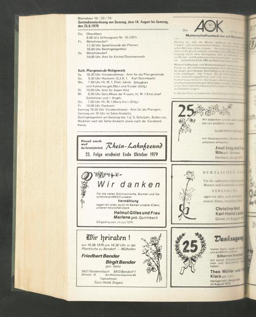 am 18.08.1979 um 14.30 Uhr in der Pfarrkirche zu Bendorf — Mülhofen